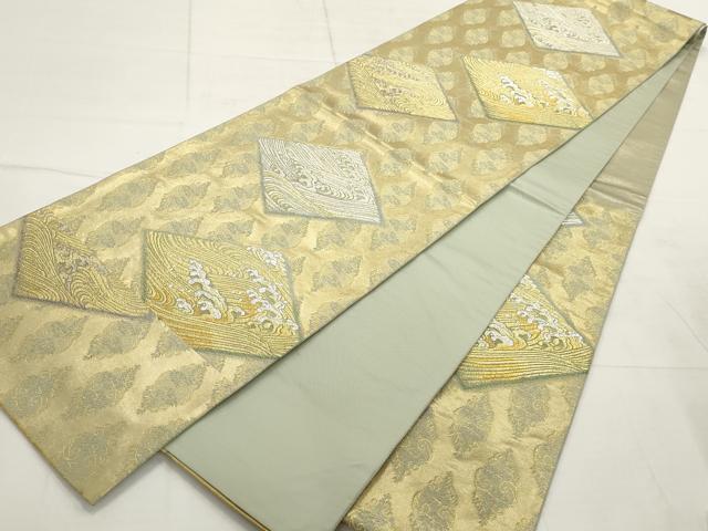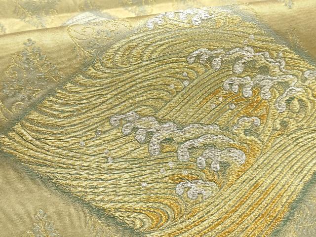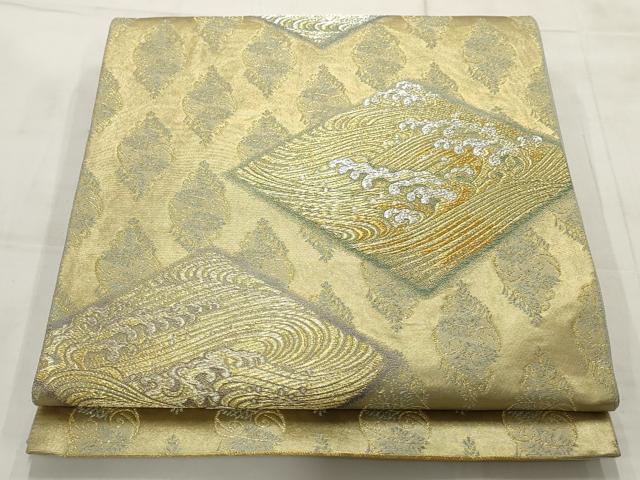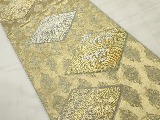 Heiwa-ya Kimono ▼ Six-pass pattern obi with diamond-shaped waves and young pine tree design, gold and silver thread, pure silk, exquisite item AABD2916wj