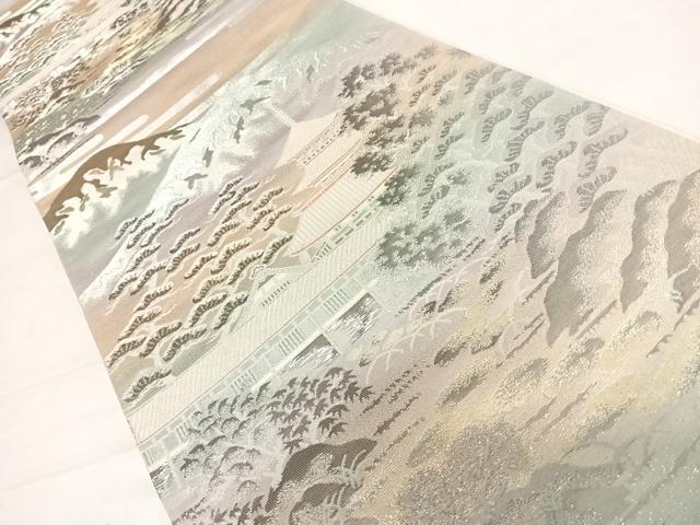 Heiwa-ya Kimono ◎ Six-pass pattern obi, landscape design, brocade, platinum foil, pure silk, exquisite item AABD3639yx
