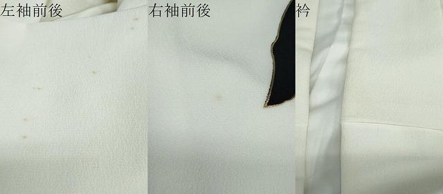 状態は接写画像のように左袖前後・右袖前後・衿に薄い汚れがございますが