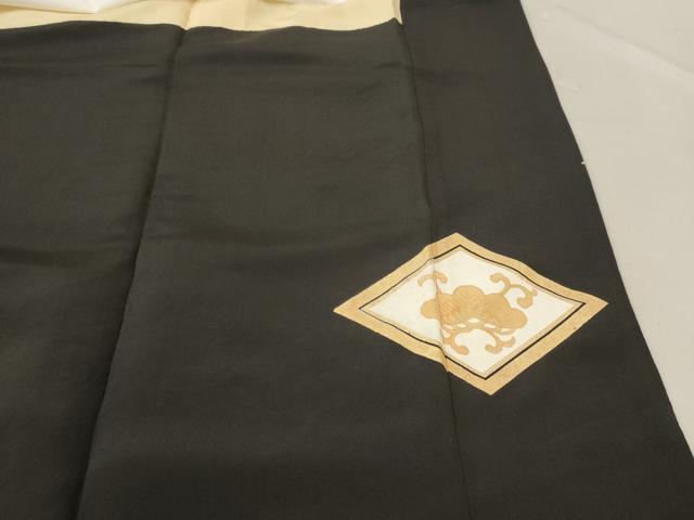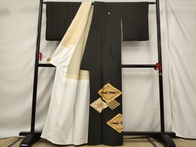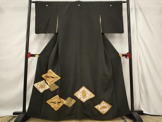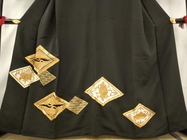 Heiwaya Kimono ■ Gorgeous black formal kimono with koma embroidery, flower diamond pattern, crane, and gold accents. Pure silk. Excellent quality. AABD9482st