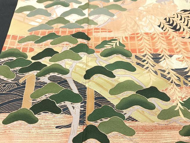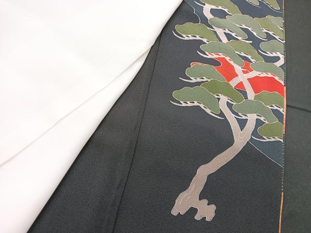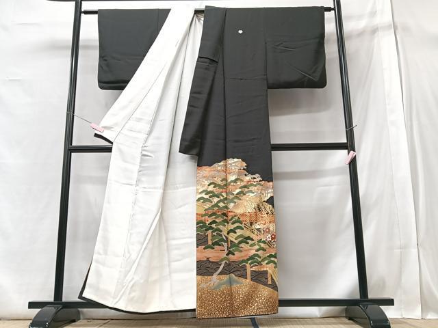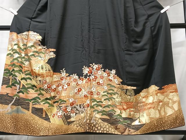 Heiwaya Kimono ■ Gorgeous Black Tomesode with a Crossing Bridge and Pine Design, Gradient Dye, Gold Accents, Pure Silk, Excellent Quality, CABA4303xe