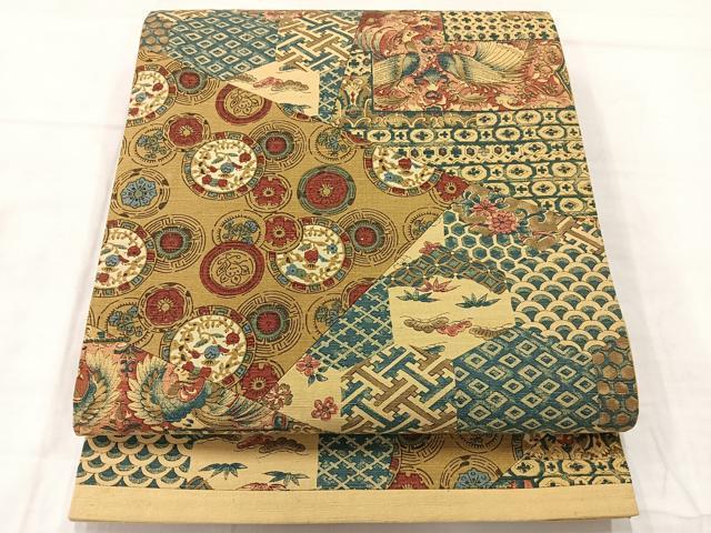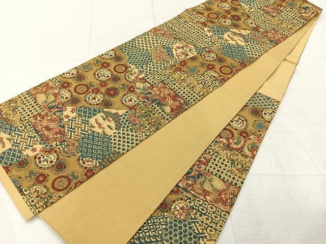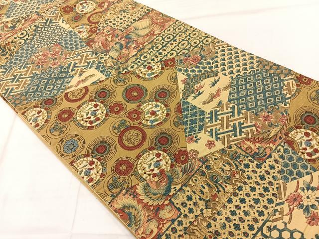 Heiwaya Kimono ◎ Six-pass pattern obi, tsumugi fabric, inlaid with auspicious floral motifs, pure silk, exquisite item, AABE2984uk
