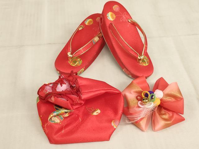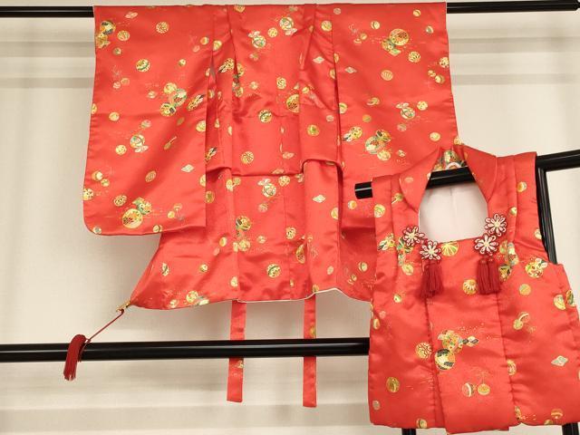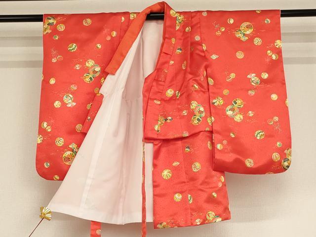Heiwaya Kimono for Shichi-Go-San, 3-Year-Old Girl, Celebration Kimono, Three-Piece Set, Includes Hifu, Sandals, Drawstring Bag, and Hair Accessory, Temari Design, Box Included, Excellent Condition, AAAU5211ja