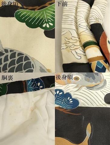 被布【正絹】の状態は接写画像のように後身頃に薄い汚れ、下前・胴裏に汚れ、胴裏にツレがございますが