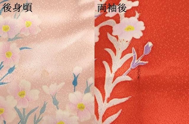 着物【正絹・比翼仕立て】の状態は接写画像のように後身頃・両袖後に汚れがございますが