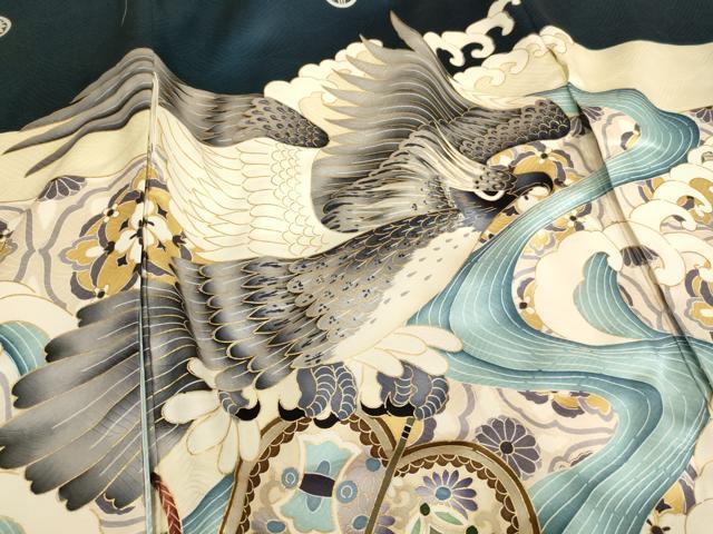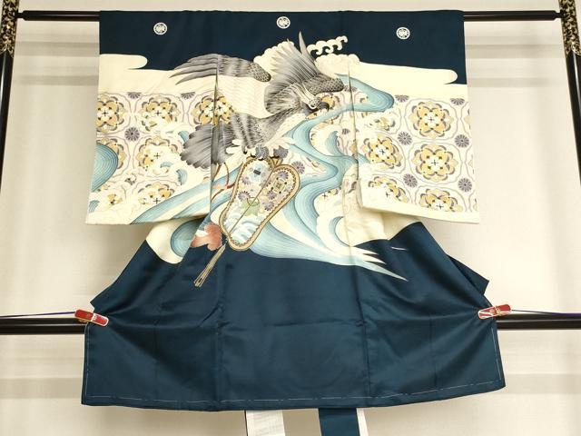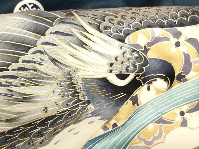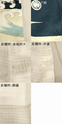 産着【正絹・五つ紋】の状態は接写画像のように左袖前・下前に汚れがございますが