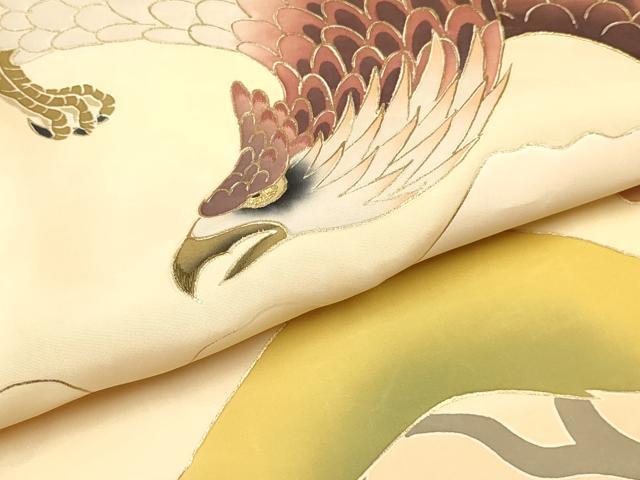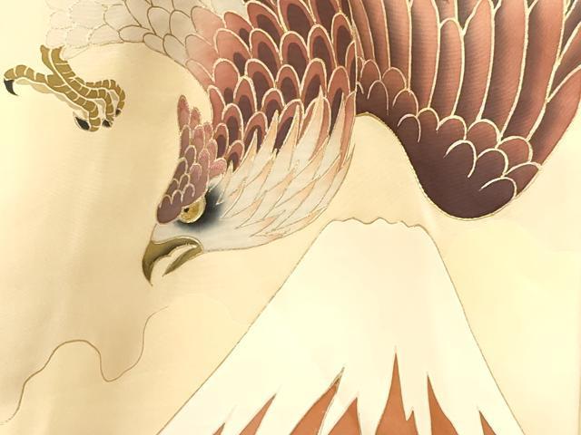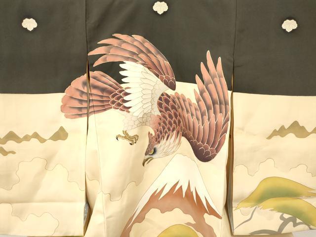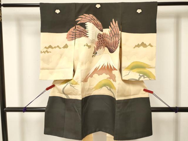 Heiwaya Kimono for Shrine Visits, Boys, Celebration Kimono, Baby Kimono, First Kimono, Noshimen, Embroidered, Hawk, Eagle, Landscape with Pine Tree Design, Gold Accents, Excellent Item, DAAY3207ma