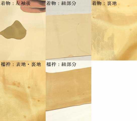 左袖後・紐部分・裏地・襦袢表地・裏地・紐部分に薄い汚れがございますが