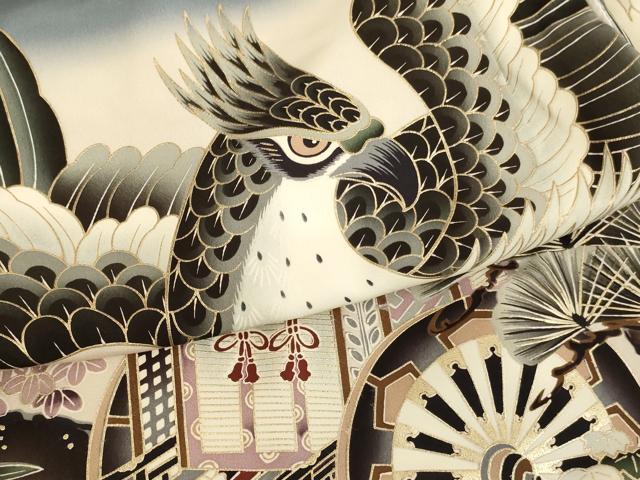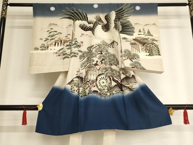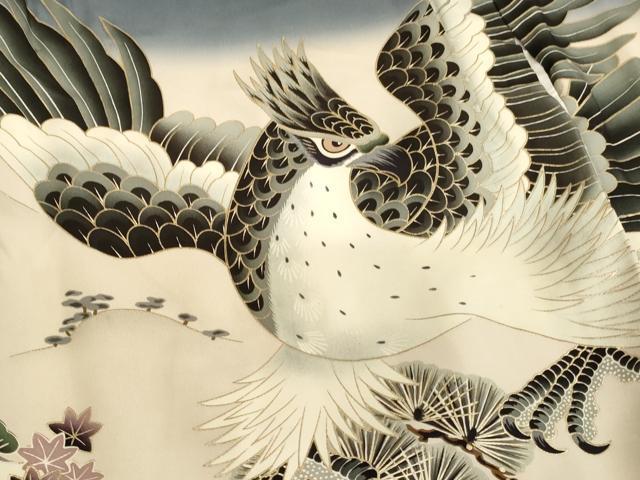 産着【正絹・五つ紋】の状態は接写画像のように左袖前・下前に薄いシミがございますが