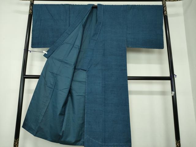 Heiwaya Kimono: Men's Tsumugi, King Size, Navy Blue, Pure Silk, Excellent Condition, Unused, DAAY1104ps