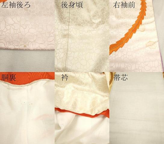 全通柄袋帯【正絹・額縁仕立て】の状態は接写画像のように帯芯に薄い汚れがございますが