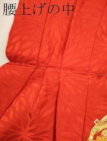 着物【表地:正絹・胴裏:化繊】の状態は接写画像のように腰上げの中に薄い汚れがございますが