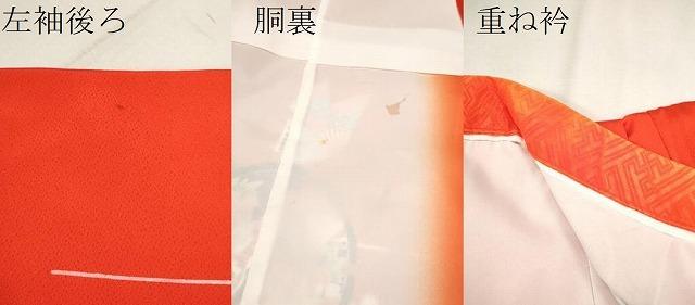 着物【化繊】の状態は接写画像のように左袖後ろ・胴裏・重ね衿に薄い汚れがございますが