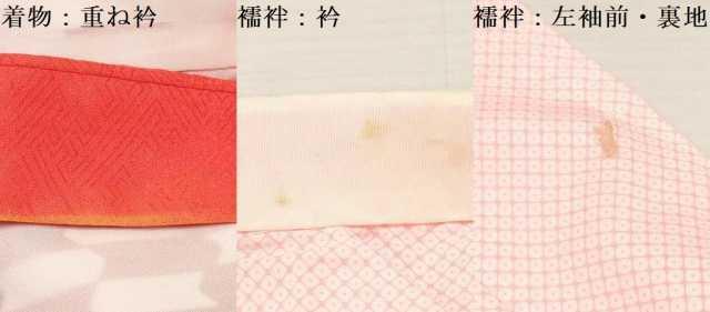 状態は接写画像のように衿・左袖前・裏地に薄い汚れがございますが