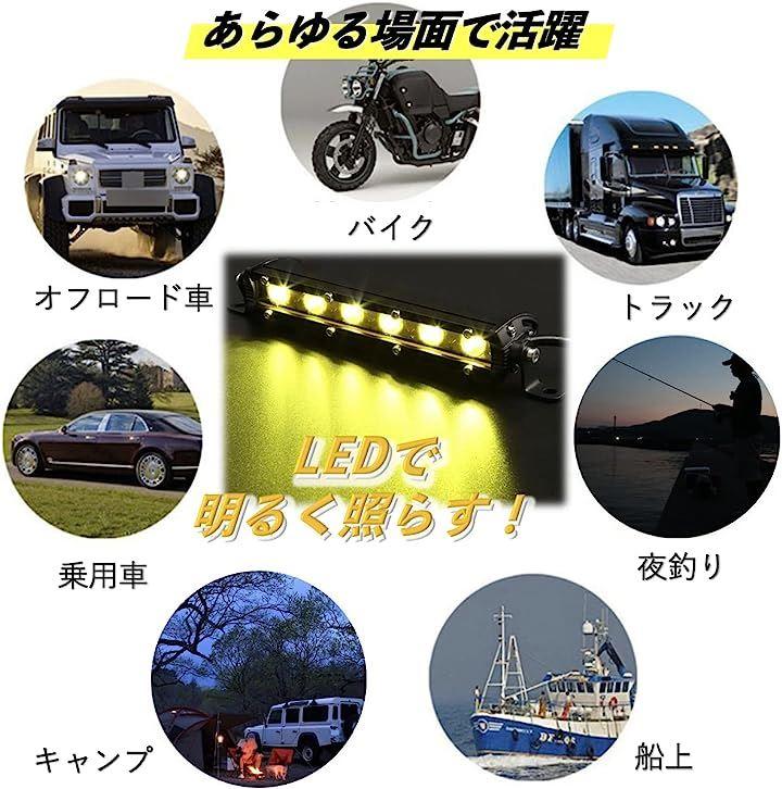 ・フォグライトとしてはもちろん、トラックの荷台用の照明、バイク、乗用車、トラック、バス、フォークリフト、作業車、農業機械、船舶用、集魚灯、釣り、キャンプ、クロカン、夜間作業、その他アウトドアなど様々なシーンで利用できます。