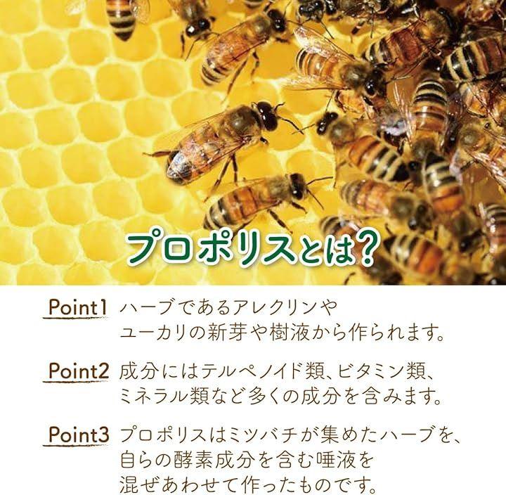 「プロポリス配合」ブラジルで良いプロポリスが採れる地域にある自社養蜂場で獲れたはちみつプロポリスを使用しています