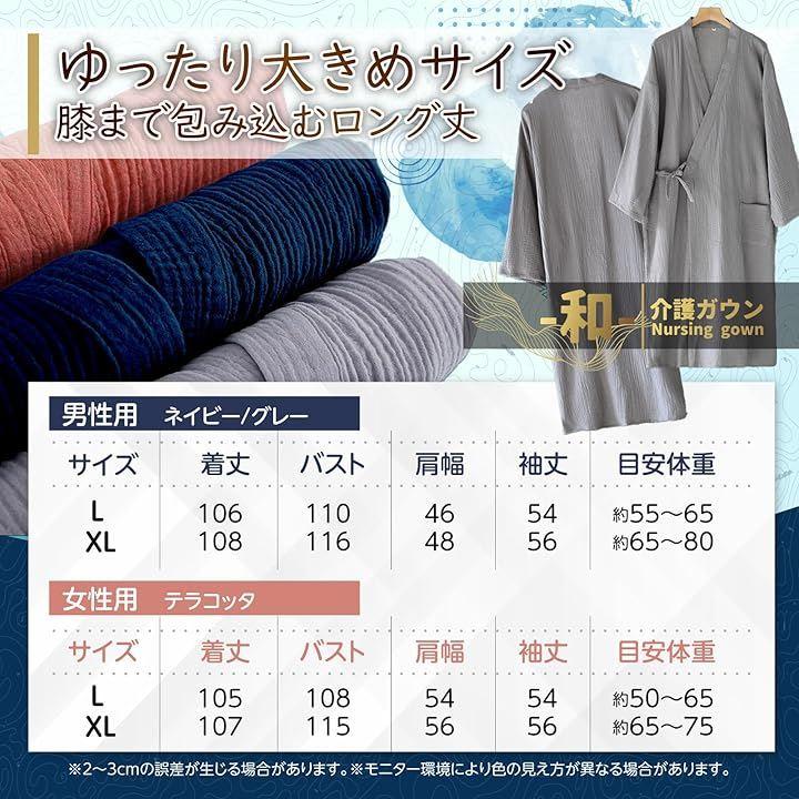 「素材」綿99%(二重ガーゼ) 「カラー」ネイビー・グレー(男性用)、テラコッタ(女性用) *モニター環境により色の見え方が異なる場合があります。