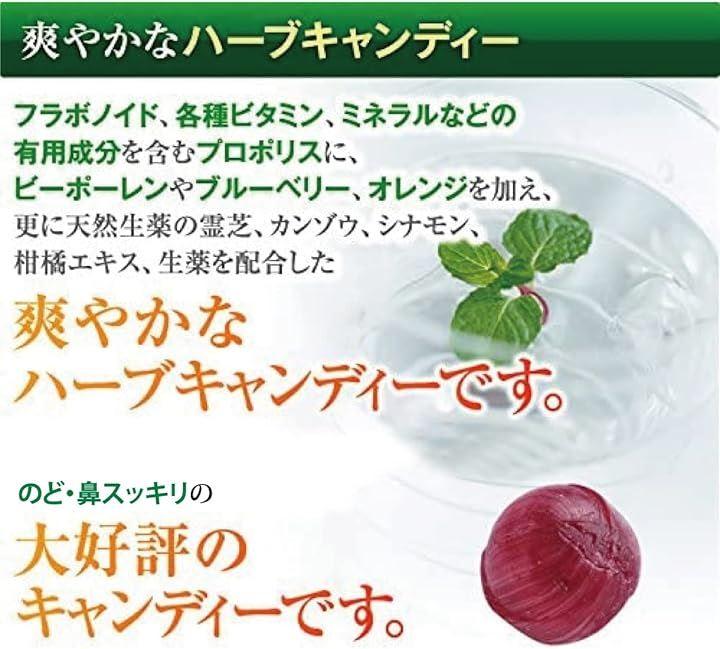 [ハーブキャンディー成分]プロポリスエキス・ビー花粉(ミツバチ花粉)・柑橘エキス(チンピ)・シナモン(桂皮)・甘草・霊芝・生姜・還元パラチノース・香料・甘味料