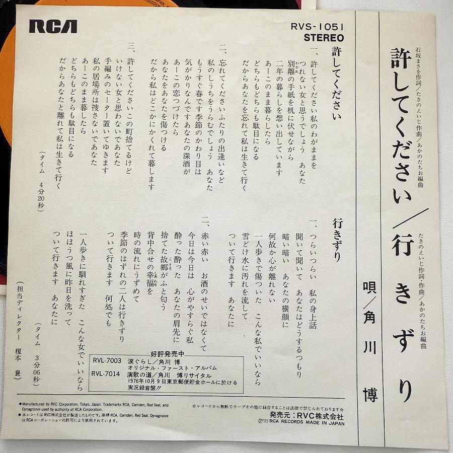 Hiroshi Kadokawa - Please Forgive Me - A Chance Stranger - Showa Era Vintage EP Record 7-inch Single Extended Play