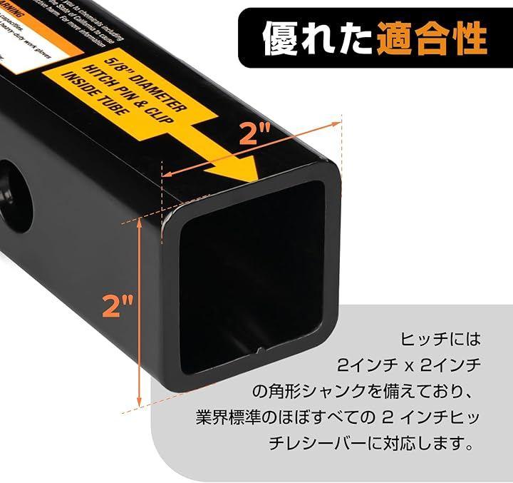 「標準2インチレシーバー」このトレーラーヒッチボールマウントには、2インチ x 2インチのシャンクが付いており、ほぼすべての2インチレシーバーに適合します。