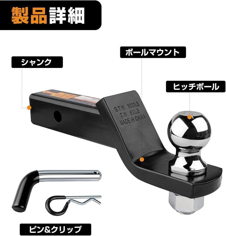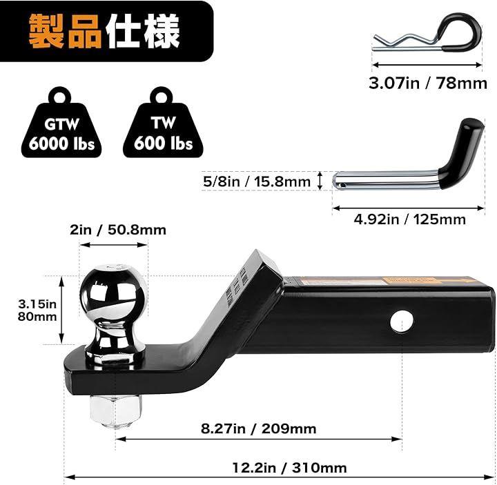 「セット内容で便利さ倍増」このトレーラーヒッチセットには、牽引に必要な全ての部品が揃っており、購入後は追加で準備するものがなく、すぐに組み立てを開始できます。