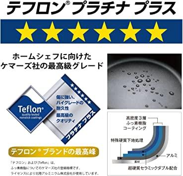 ガス火に最適なフライパン内面は「テフロン(TM)プラチナプラス加工」で料理を美しく仕上げ、汚れもサッと落ちます本体は熱伝導の良いアルミニウム合金製底は3mmの厚さで熱変形に強く、熱ムラのない熱伝導が可能です