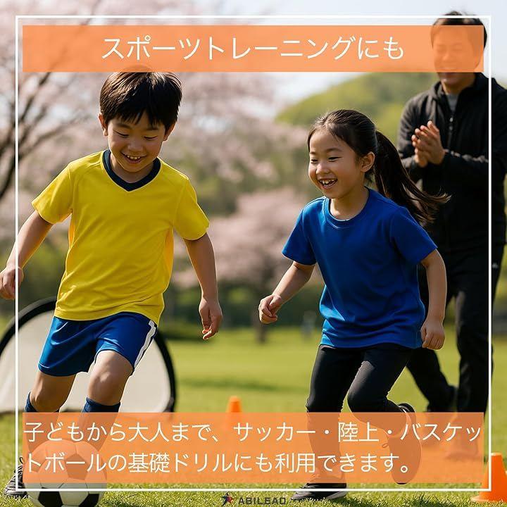 リングを直線、Z字、U字に並べるだけで、反応や足さばき、止まる・曲がるといった動作を短時間で反復できます。