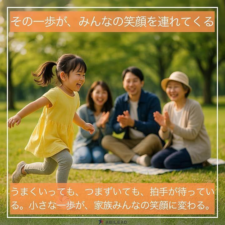 「家でも外でも小さな一歩が思い出に」リビングでも公園でも、最初のひと跳びで空気が明るくなる。