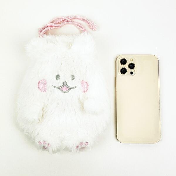 紐を縛るとコロンとしたフォルムでカワイイ。ふわふわした手触りでまるでぬいぐるみのようです♪こちらはふわころちゃんです。