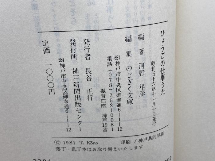 商品名:ひょうごの仕事うた (のじぎく文庫) 神戸新聞総合印刷 河野 年彦