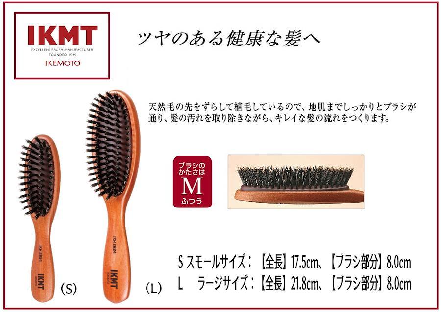 【品質表示】本体の材質:天然木(チェリーウッド)植毛台:ABS樹脂毛の材質:天然毛(豚毛100%)耐熱温度:80度ブラシの硬さ:M 普通サイズ:S: [全長]約17.5cm、[ブラシ部]約8cmL: [全長]約21.8cm、[ブラシ部]約8cm生産国:日本製