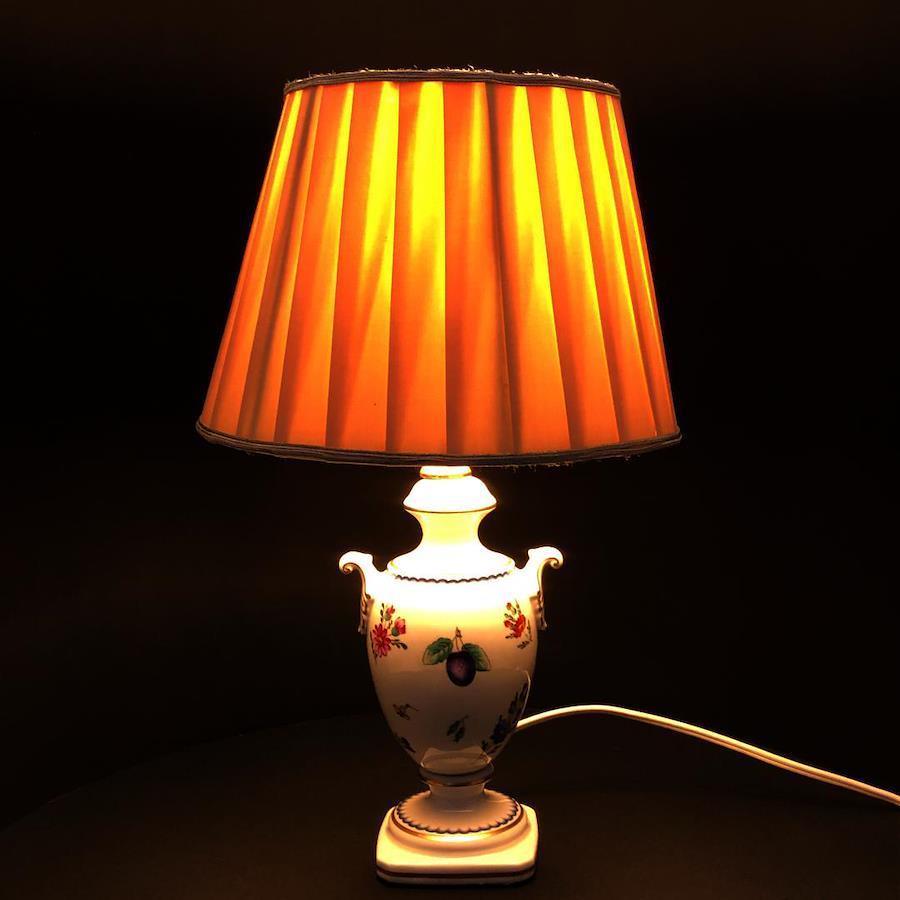 【状態】【訳あり理由】台座ボディにカケ、金彩・塗膜の剥げが見られます。シェードにシミ・ペン跡が見られます。また多少の歪みが見られます。その他使用感が見られます。以上ご理解のうえご購入をお願い致します。画像にて商品状態のご確認をお願い致します。