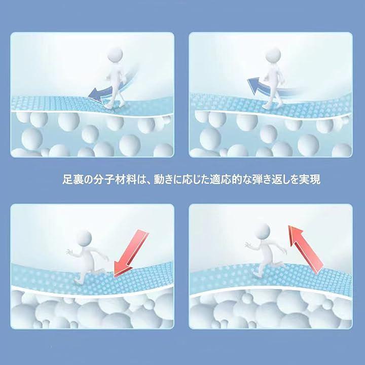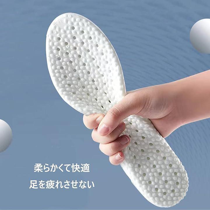 インソールの底には多くの穴を設けており、通気性と速乾性に優れて防臭効果を発揮し、多くの突起の粒が運動中でも滑り止め効果を発揮します。