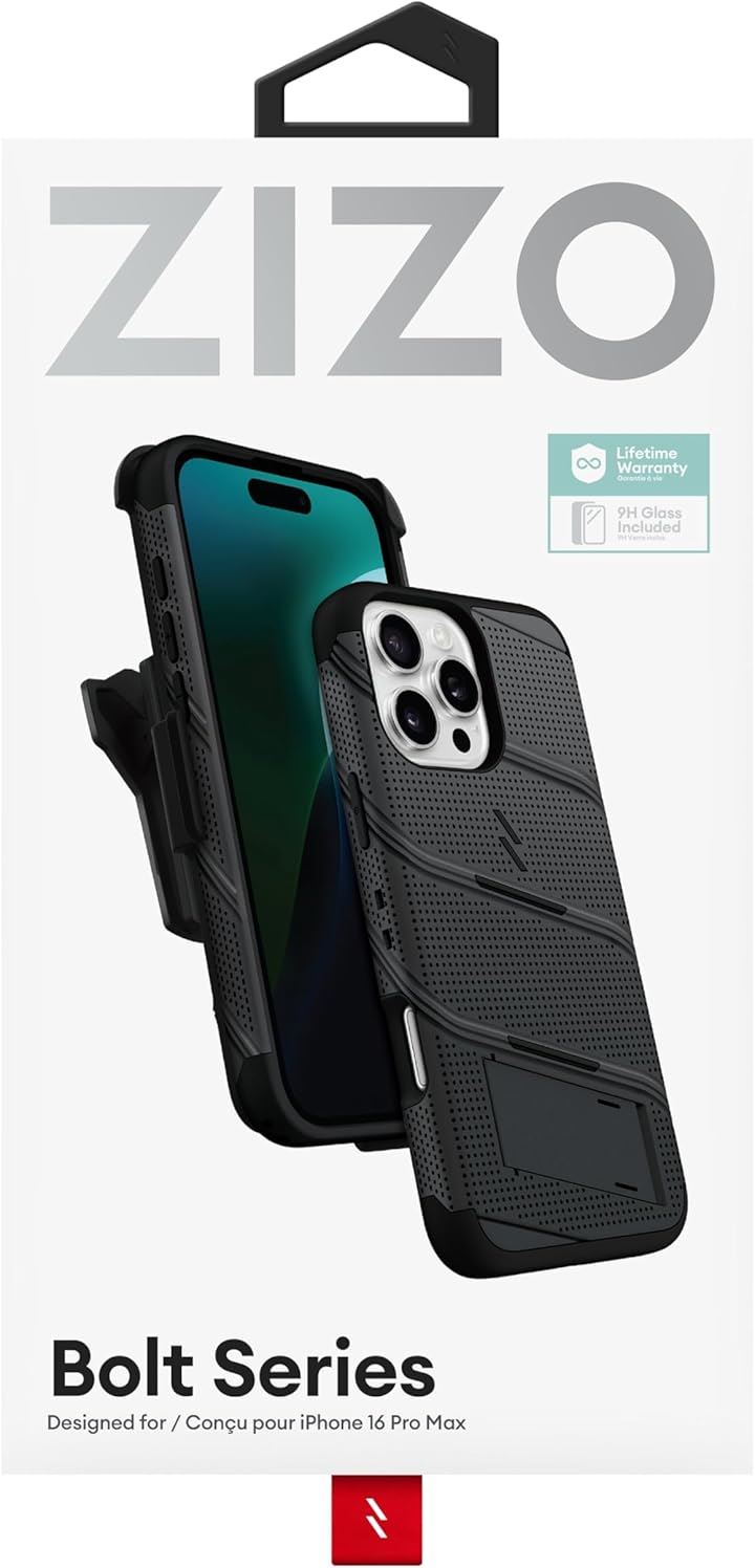 *ブランド:Zizo (米国)、対応機種:AppleiPhone 16 Pro Max (6.9インチ)(2024年発売)、商品内容:ケース本体、液晶保護ガラス、ランヤード、各1pcs、
