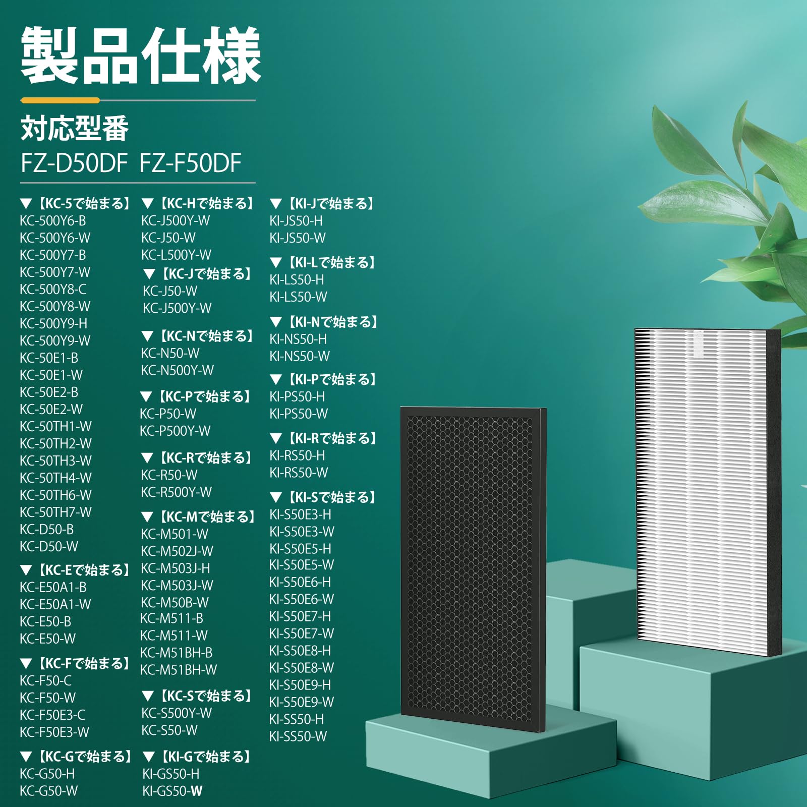 3営業日以内に発送≪新品未開封品≫:商品の説明:・ 加湿空気清浄機交換用フィルターセット、対応型番: FZ-D50HF FZ-D50DF FZ-F50DF「互換品」・ 材質:ポリプロピレン,ポリエチレン・活性炭、フィルター枠(不織布)・ HEPAフィルターサイズ:ヨコ400mm×マチ27mm×タテ220mm・ 脱臭フィルターサイズ:ヨコ400mm×マチ10mm×タテ220mm・ 集塵フィルター FZ-D50HF 交換の目安:約1~6年。お部屋の細かい粉じんやホコリを集めるため変色(灰色、黄土色など)することがありますが、異常ではありません。・ 集じんフィルター機能: PM2.5、花粉、アレル物質(ダ二のふん?死がい)、カビ菌、ホコリ?チリ、夕バコの煙(粒子)、ペットの毛などを捕集します。・ 脱臭フィルター FZ-D50DF(FZ-F50DFの同等品) 交換の目安:1~6年。使用時間や設置場所により交換時期は異なります。・ 脱臭フィルター機能: 料理臭、ペット臭、部屋干し衣類の生乾き臭、体臭、加齢臭などを消臭できます。・ 本品は消耗品です。使用環境によりフィルターの寿命が変化するため注意