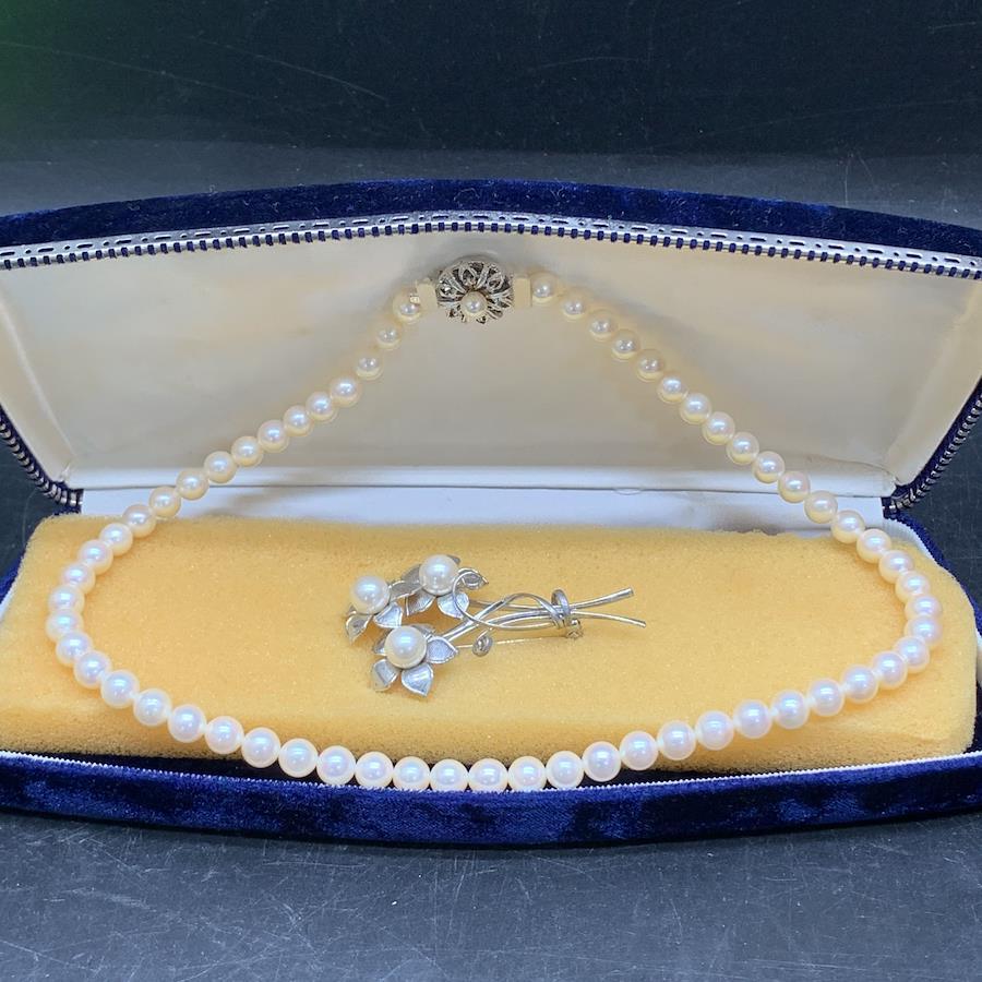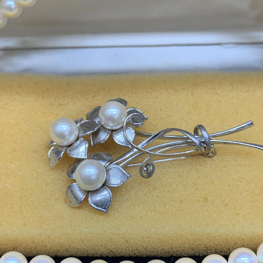 ネックレスは本真珠SILVER刻印ありブローチは金種刻印なし、本真珠かフェイクか不明です