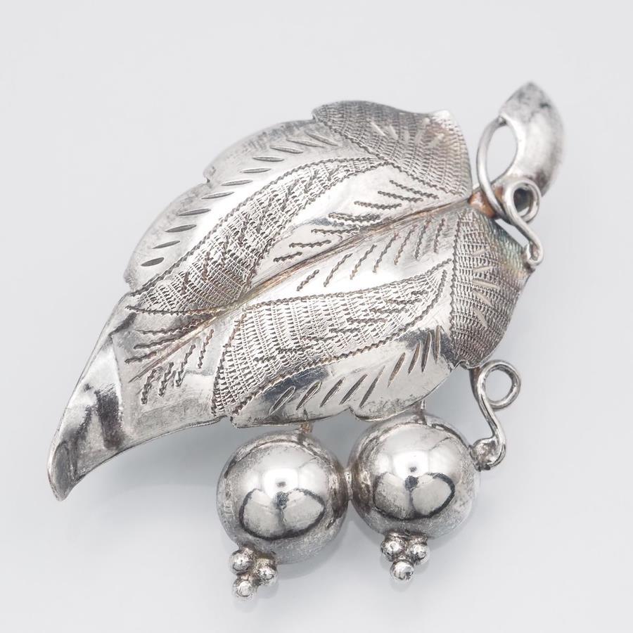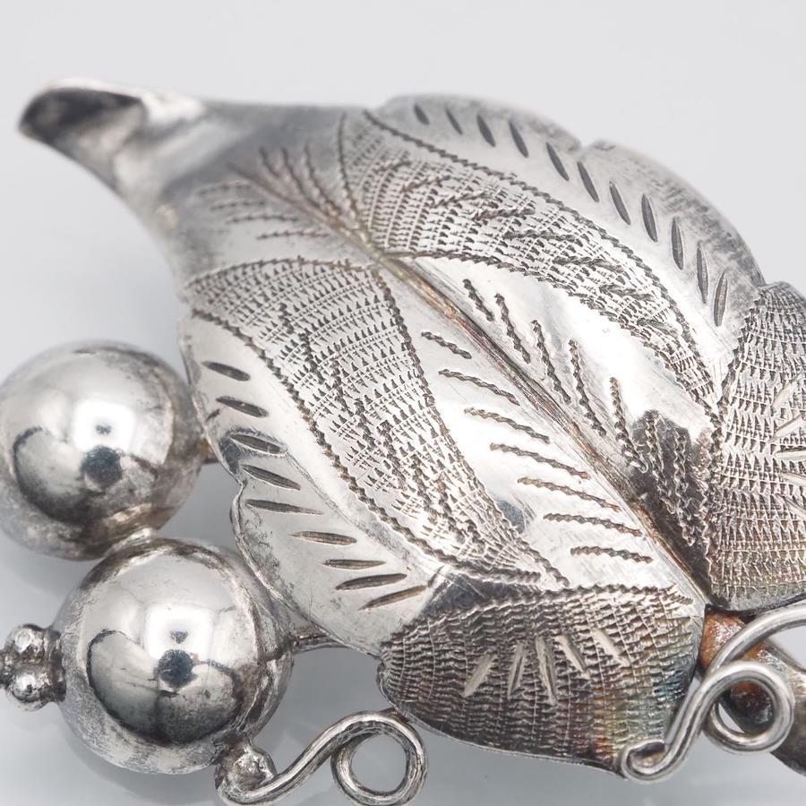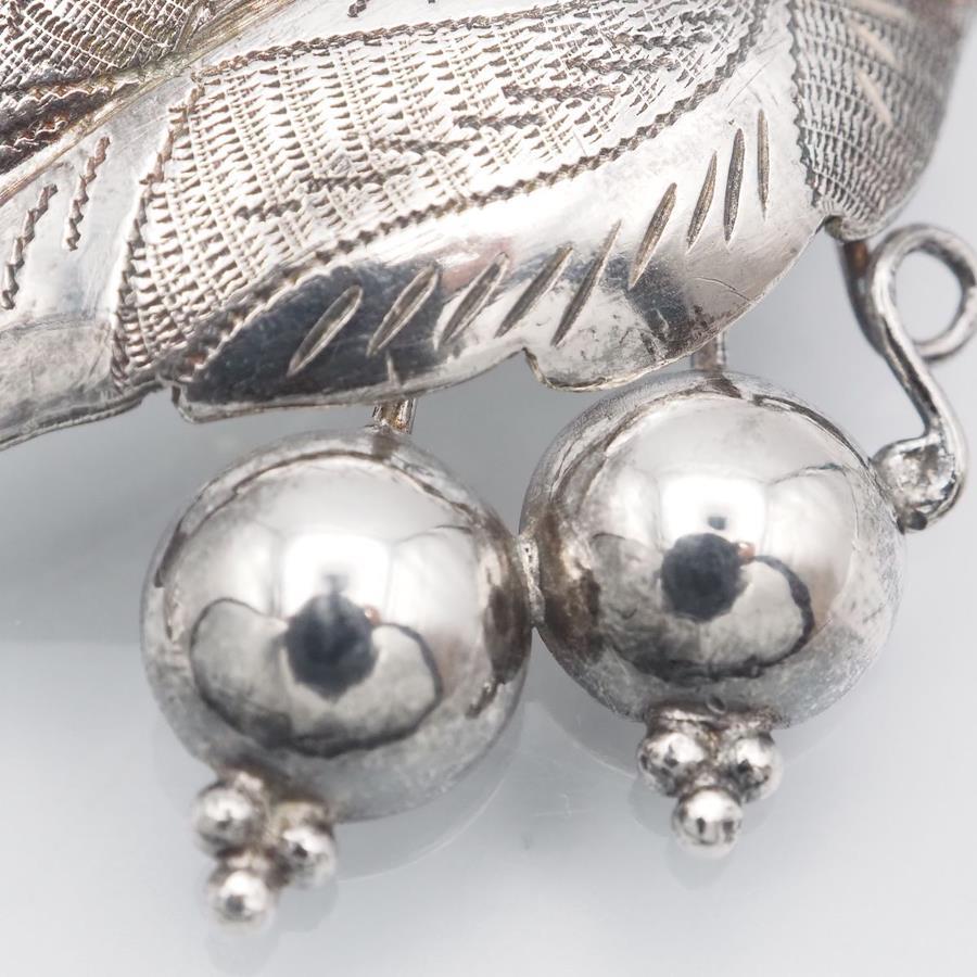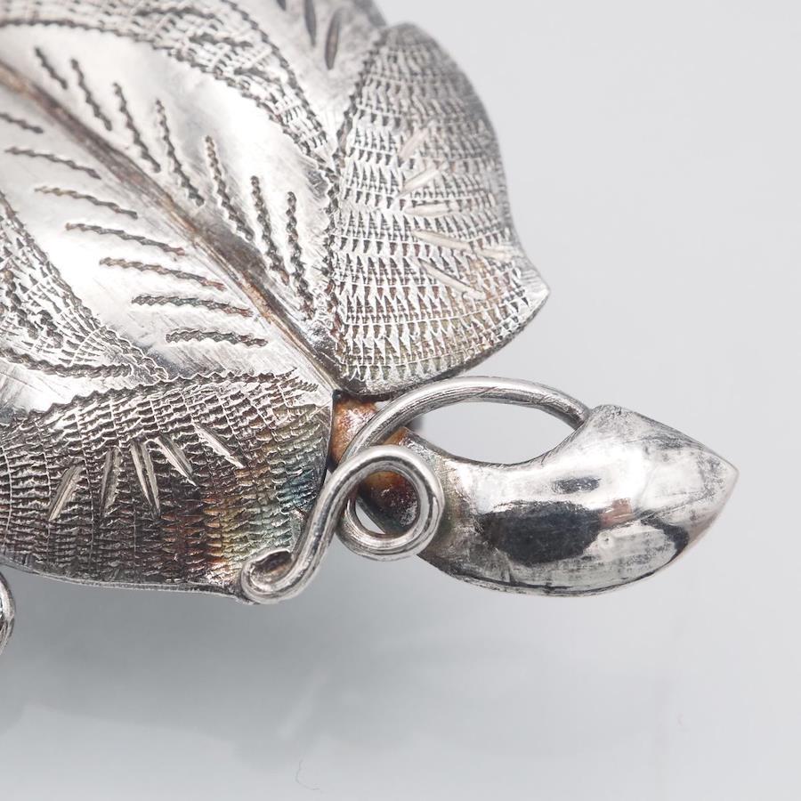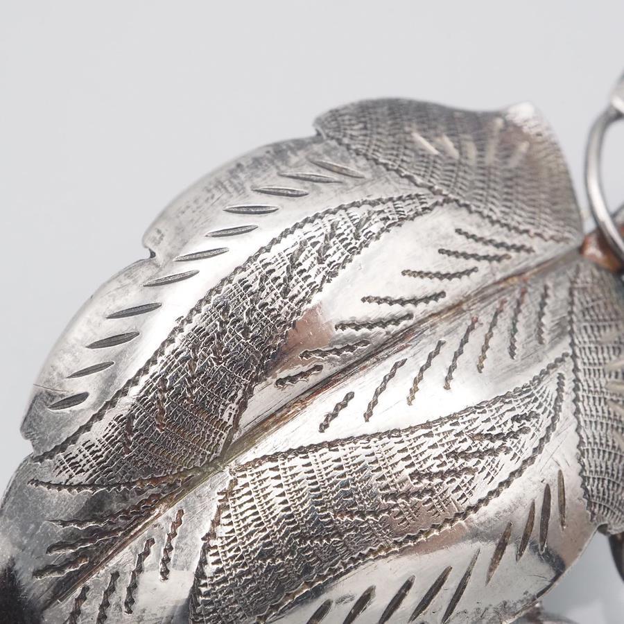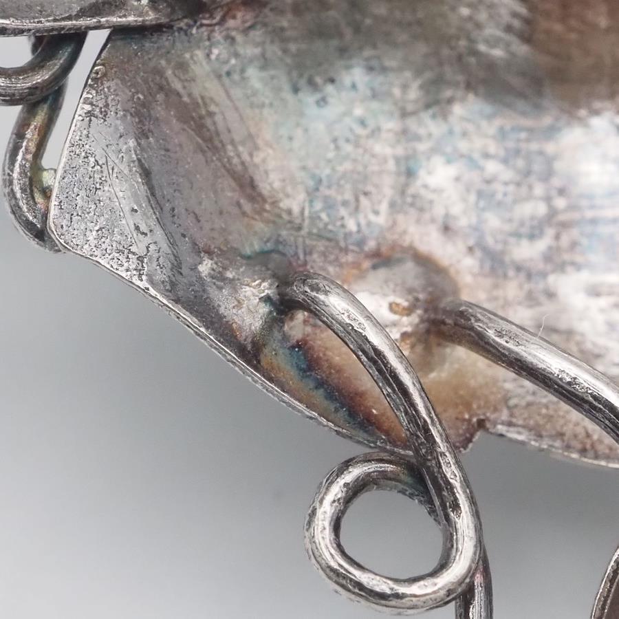 おそらく銀製かと思いますが、刻印が無いため断言できません。画像をたくさん掲載しておりますのでそちらでご確認とご判断をお願いいたします。