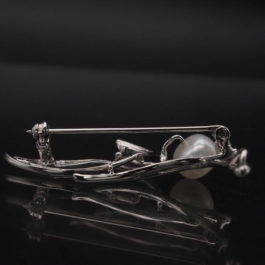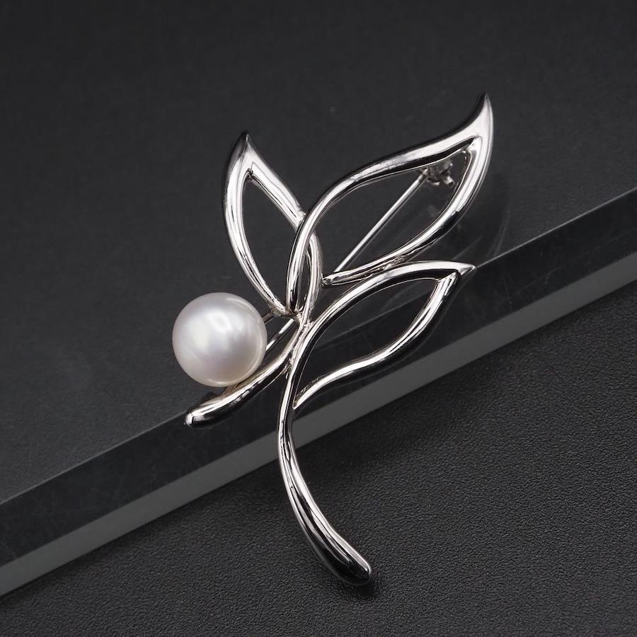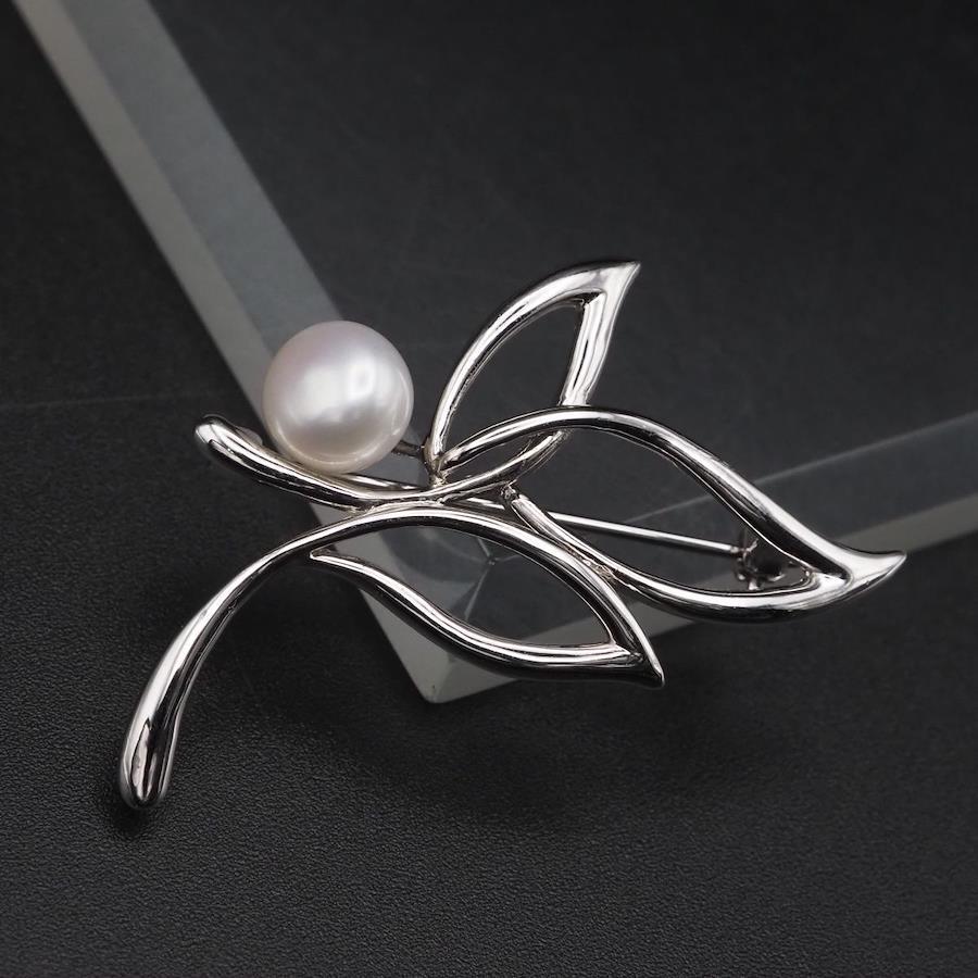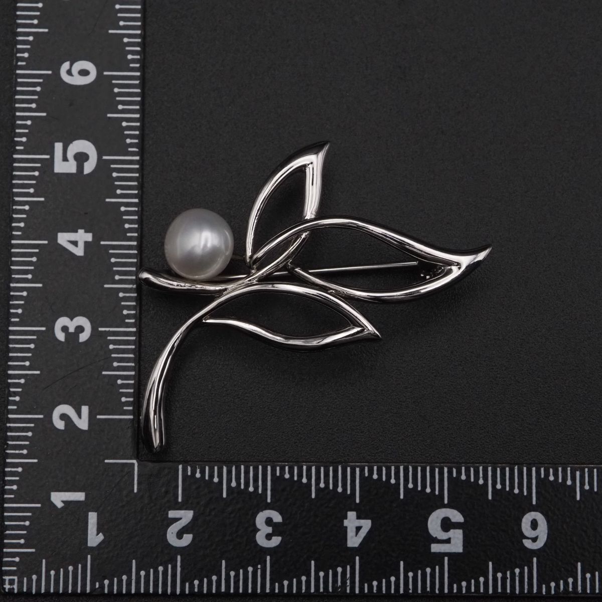 J392 Freshwater Pearl Brooch, Leaf Design, Silver Corsage, 925 Stamp, June Birthstone