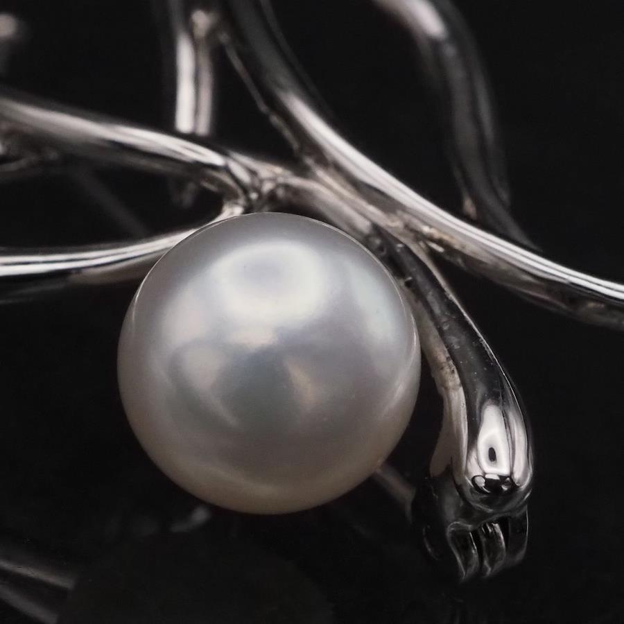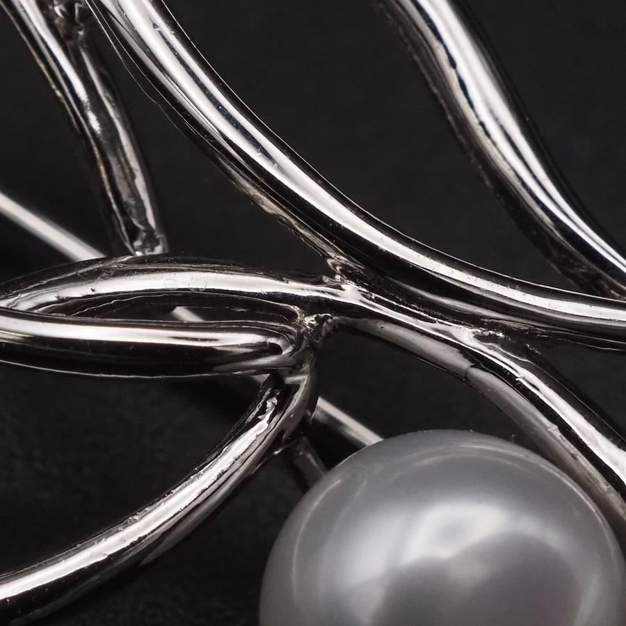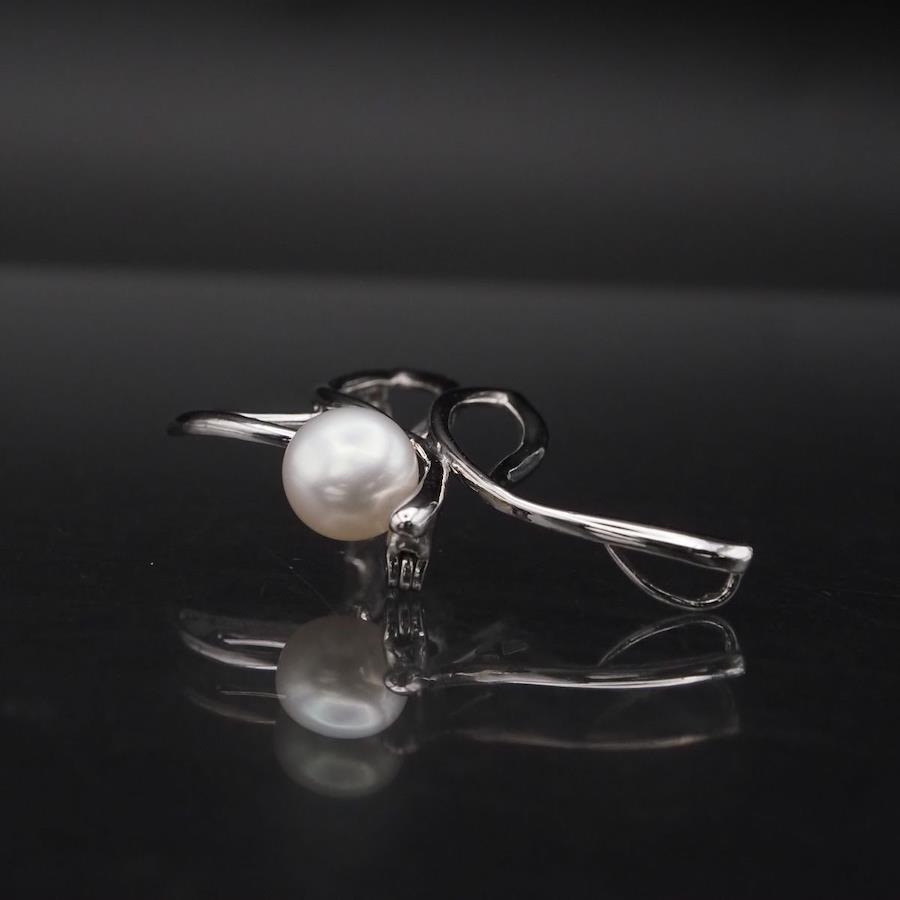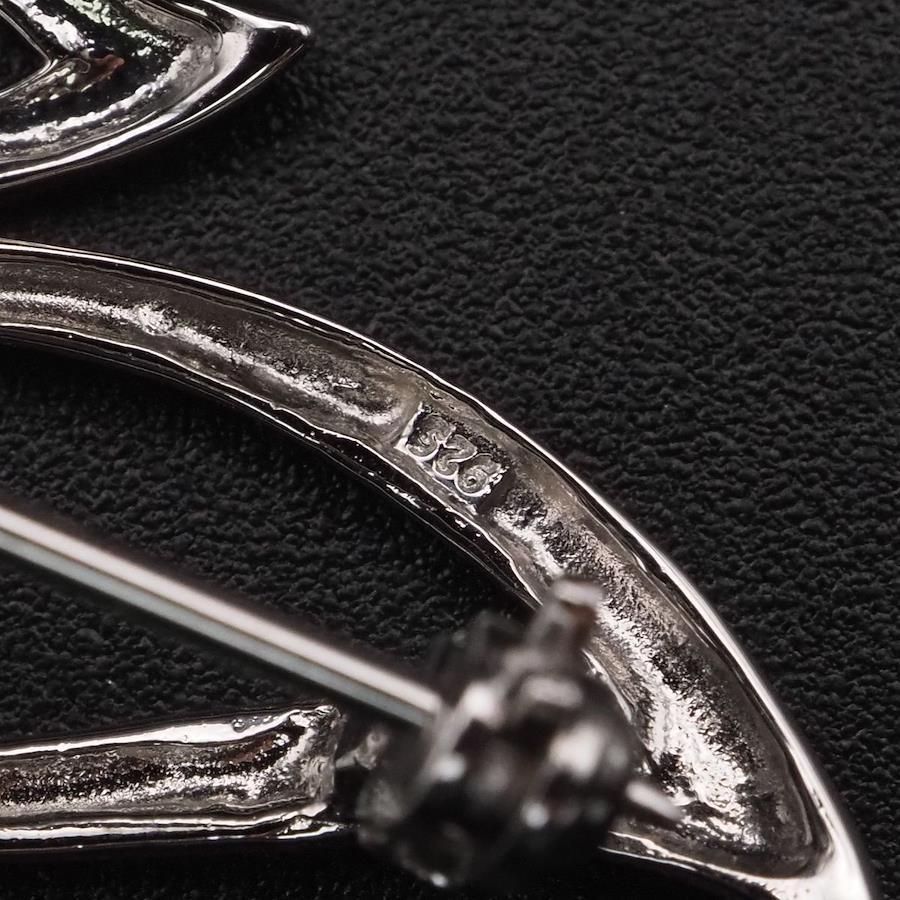 J392 Freshwater Pearl Brooch, Leaf Design, Silver Corsage, 925 Stamp, June Birthstone