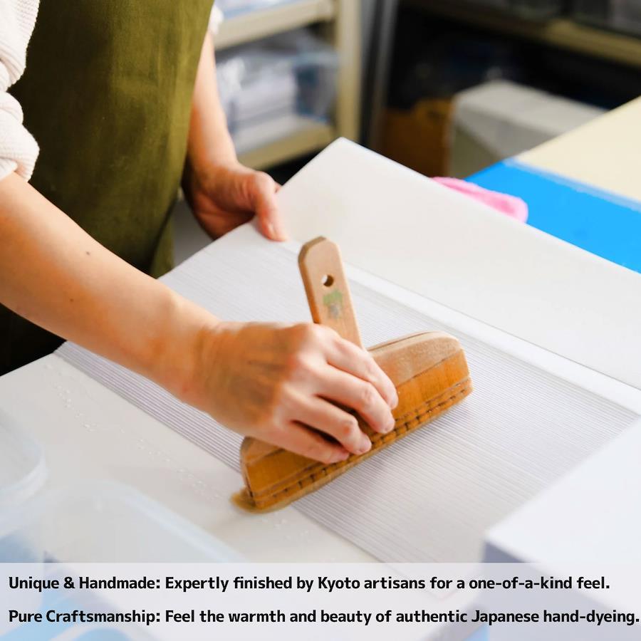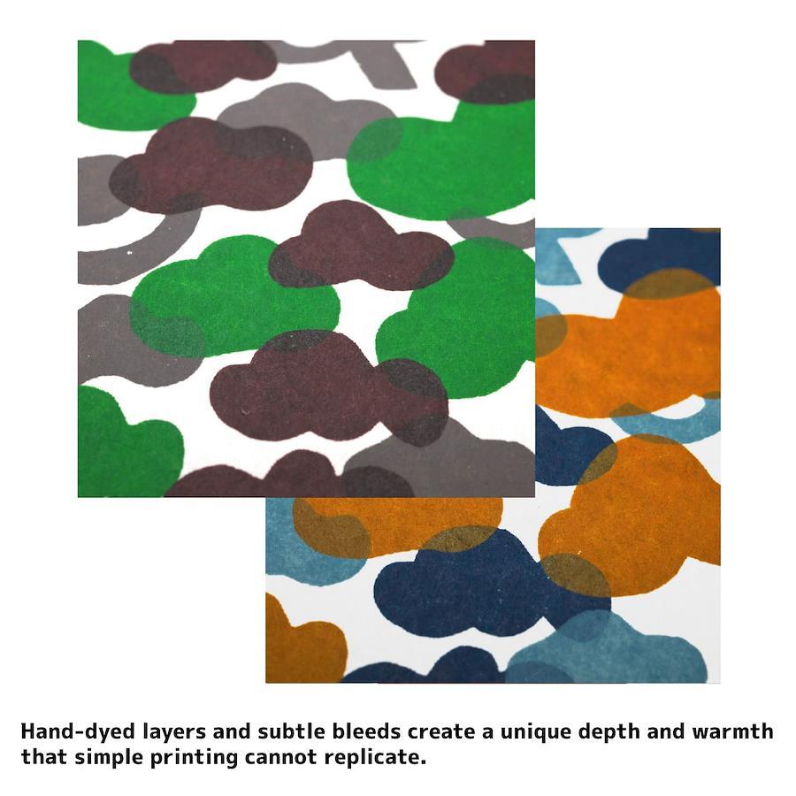 本商品に使用している和紙は、京都の職人が一枚ずつ手染めで仕上げています。そのため、まれに白い点やわずかな色ムラが見られることがございます。