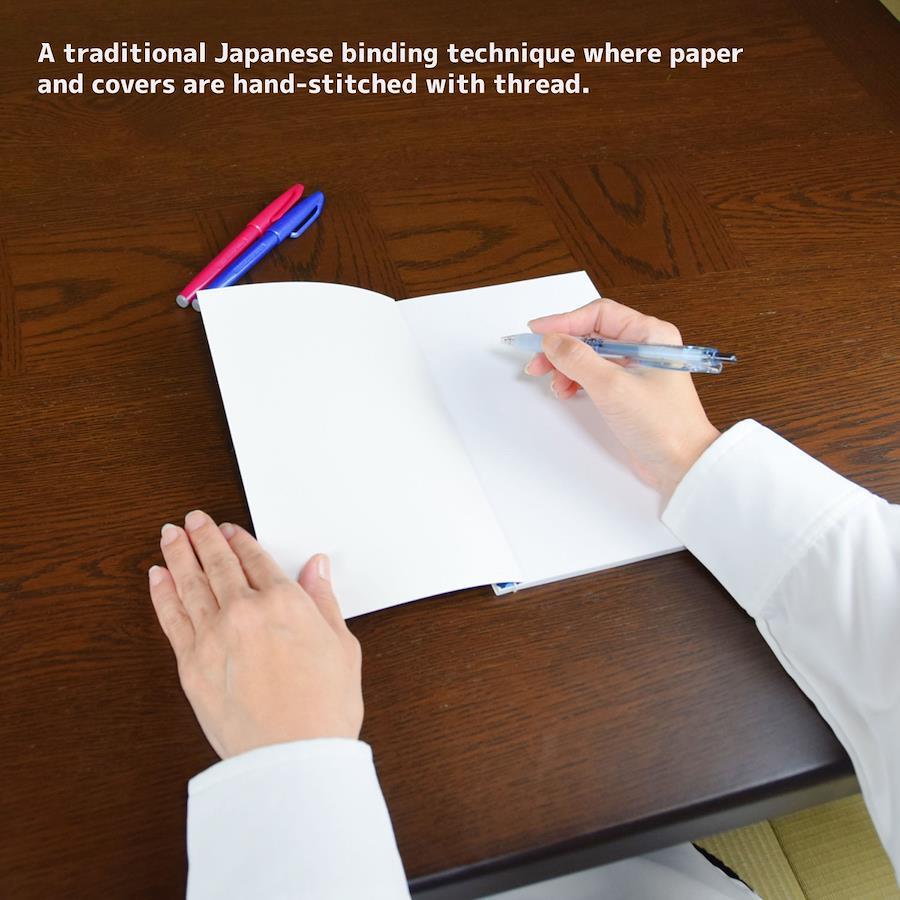 和綴じは、日本の伝統的な製本技術。糸で紙を縫い合わせて、表紙と背表紙を一体化させたノートです。