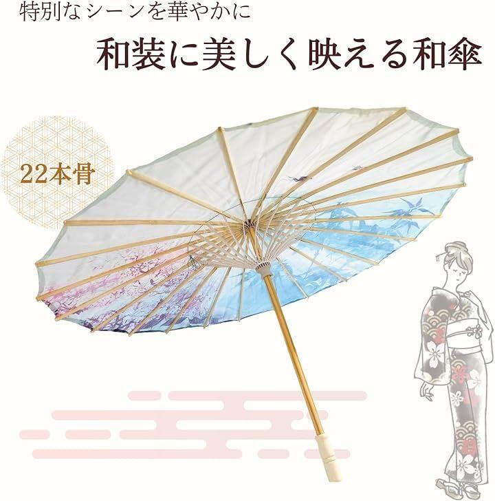 22本骨のしっかりした構造で開いた時の存在感があり、花柄の傘布が和装に美しく映えます。