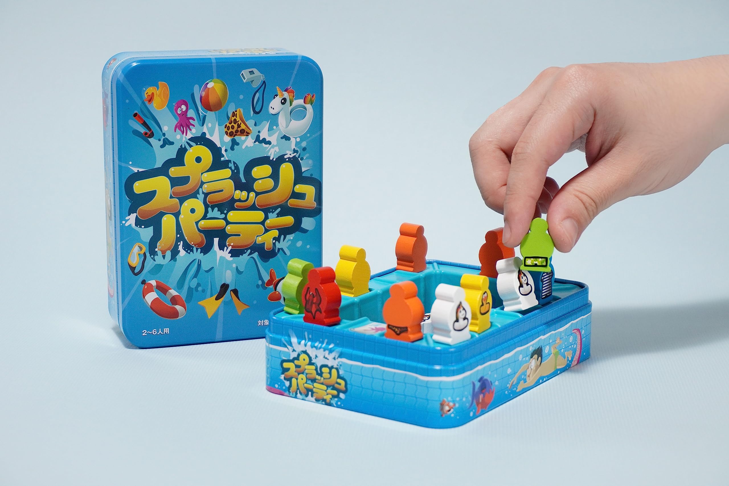 大事なのは駆け引きとハッタリ! 失敗するまでずぶ濡れに! みんなで楽しめるゲームです。 1:自分のコマの色はみんなにヒミツ! 2:好きなコマを選んでプールサイドを1?3マス移動させよう。 移動先に他のコマがあればプールに落とせるぞ! 3:最後までプールサイドに残っていたら勝ち! 箱サイズ:14.5×10.5×4 プレイ時間:10分 プレイ人数:2~6人用 年齢対象:6歳以上 ゲームデザイン:ハインツ・マイスター