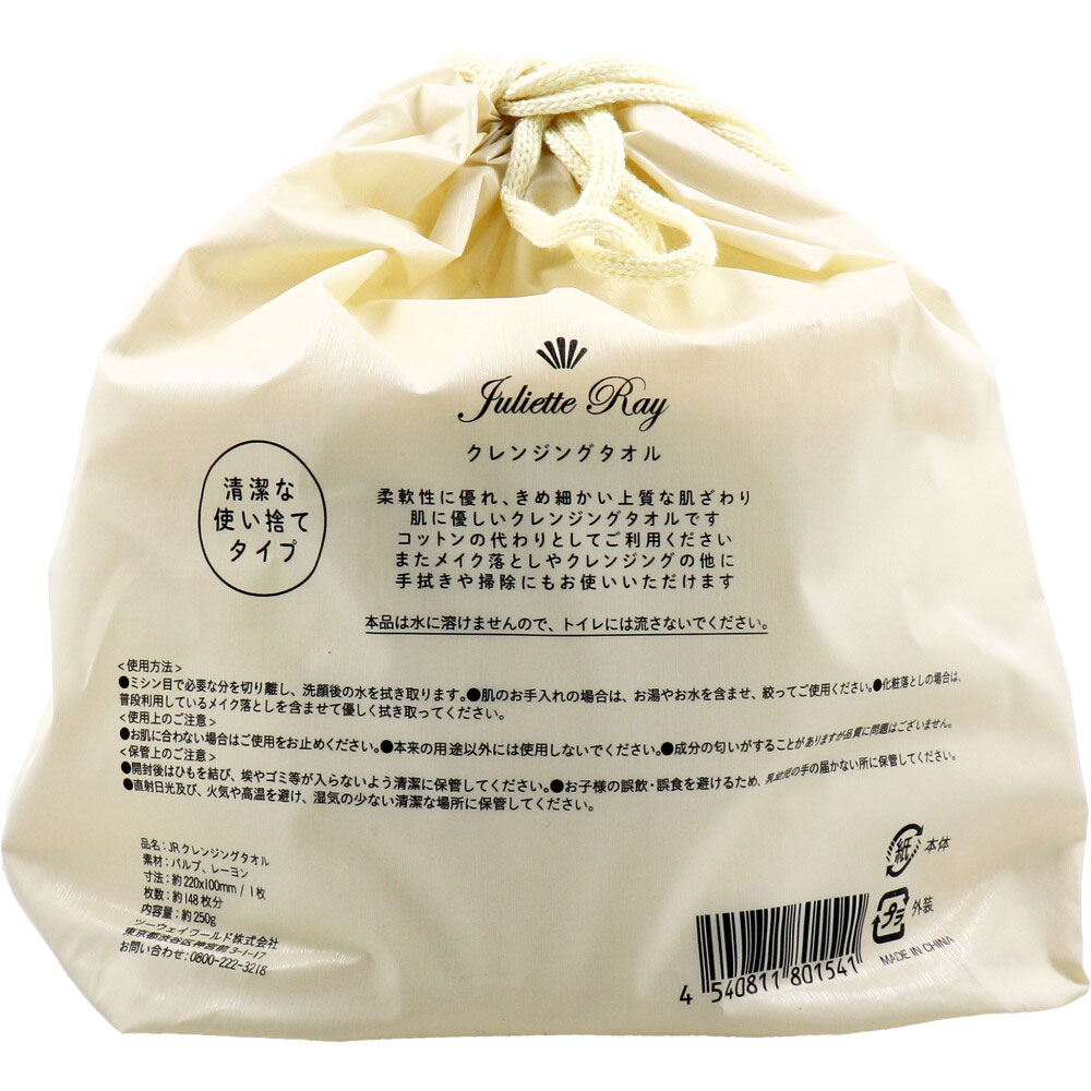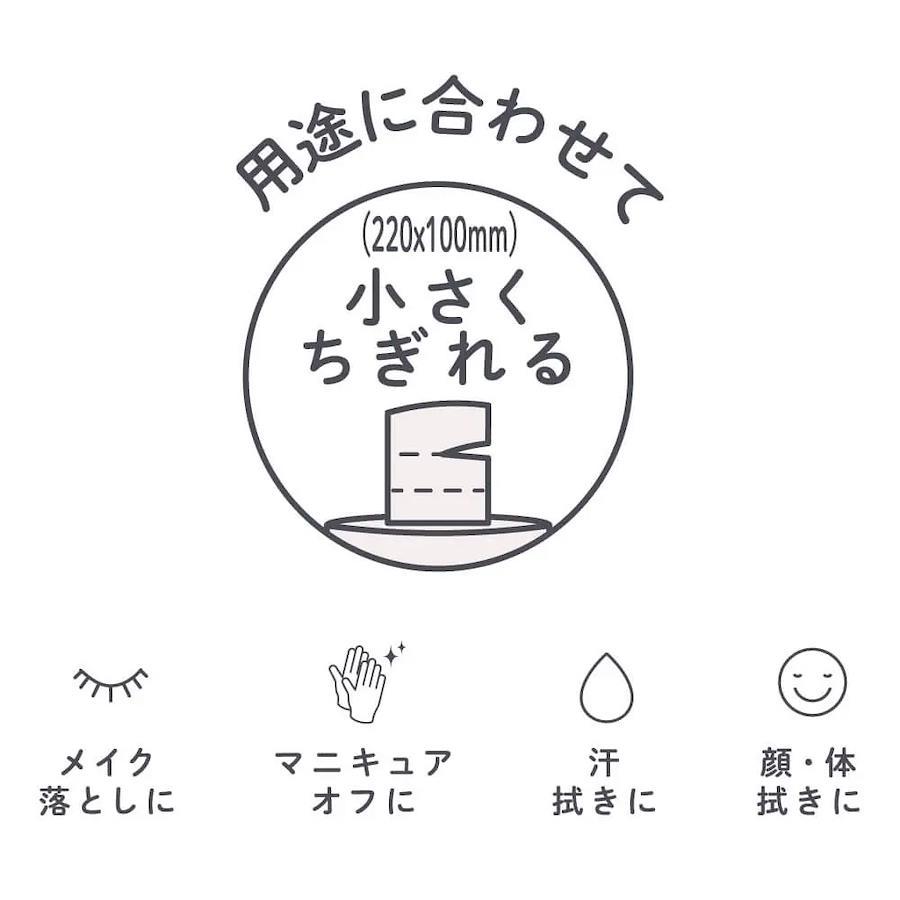 コットンやタオルとしてミシン目でカットして使えるクレンジングタオルです。使い捨てタイプで、タオルの雑菌や汚れを気にすることなく清潔さを保つことができます。●100%植物繊維(パルプ、レーヨン)を使用しているため吸水性に優れ、毛羽立たず繊維がお肌に残りません。●表面は凹凸加工がされており、小さめ(22cm×10cm)にもカットできることから、メイク落としやマニキュアオフの用途にも向いています。●洗面台などに置いていても圧迫感の少ないパッケージデザインです。●1ロール約148シート入り。