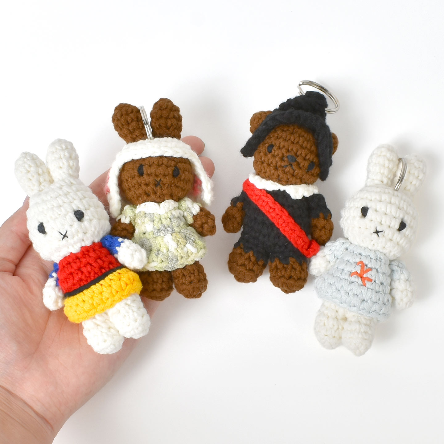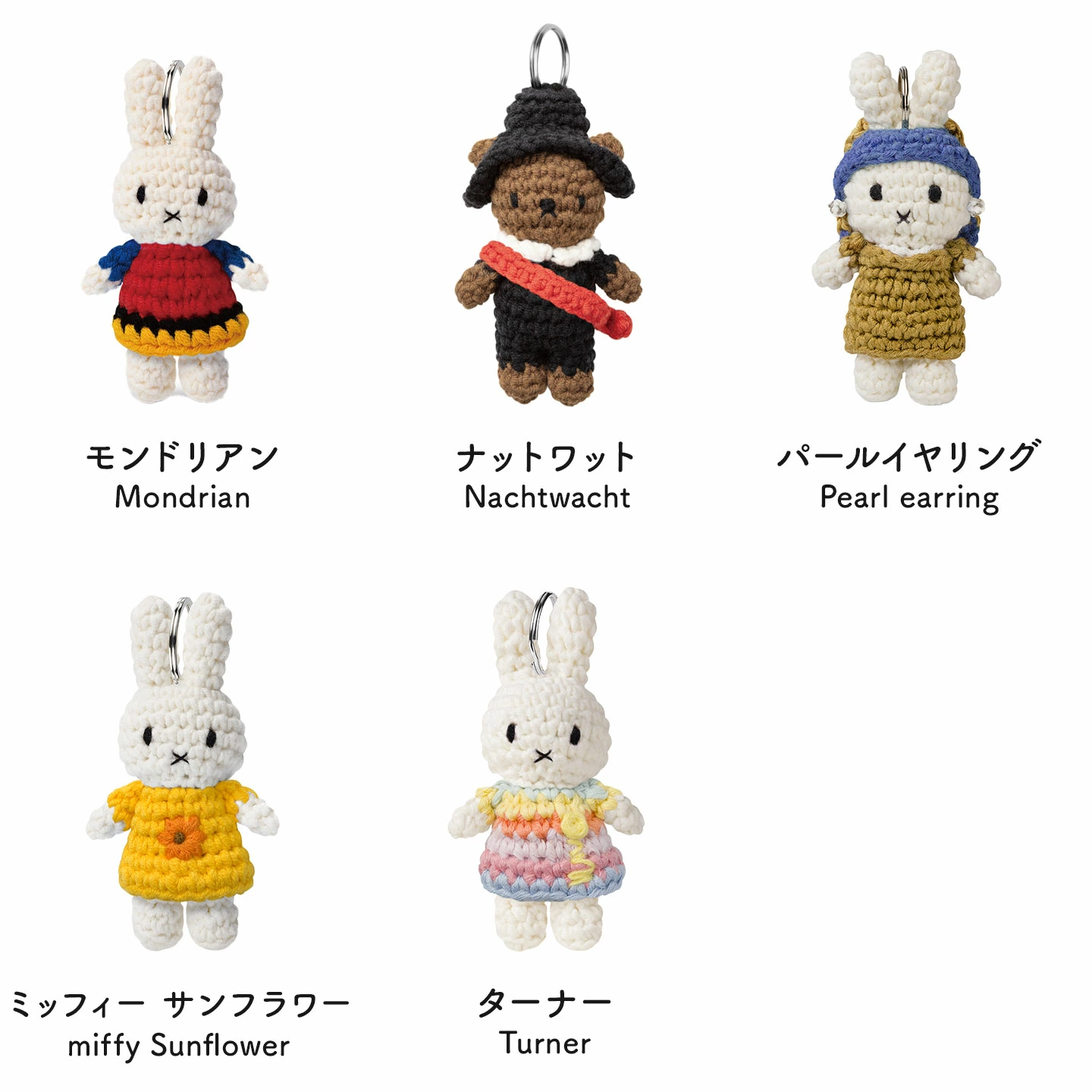 【ミュージアムアウトフィット ハンドメイド キーハンガー】ミッフィーの編みぐるみ「just dutch(ジャストダッチ)」シリーズにキーリングが登場しました。名画とコラボしたミュージアムシリーズです。手のひらサイズの編みぐるみがそのままバッグや鍵のアクセントに。ひとつひとつ丁寧に編まれた温もりのあるデザインで、日常にほっとする彩りを添えます。ギフトやプレゼントにもオススメ◎