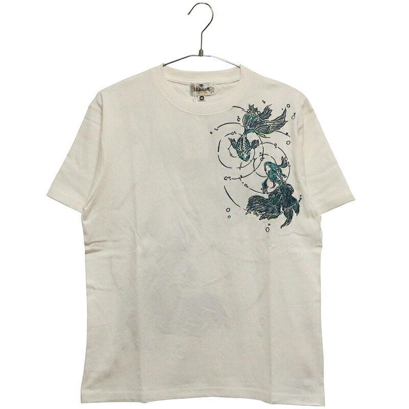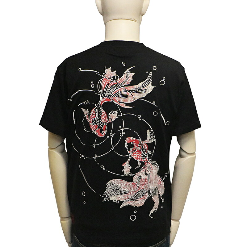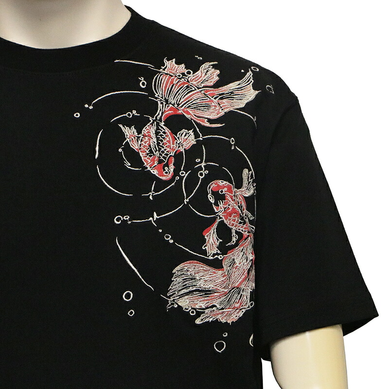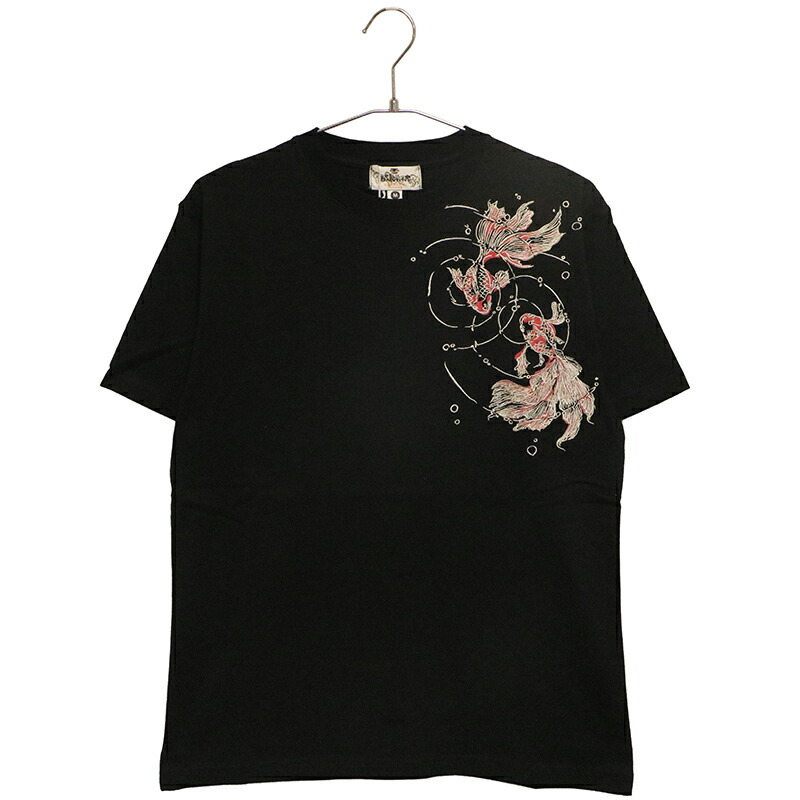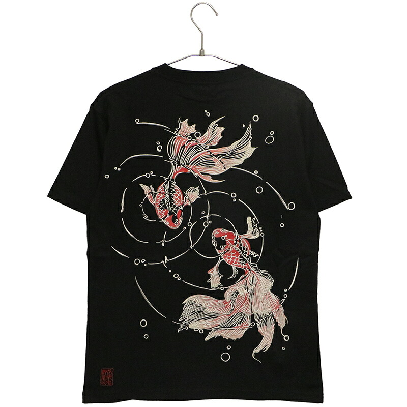 金魚 柄 刺繍 和柄 半袖Tシャツ