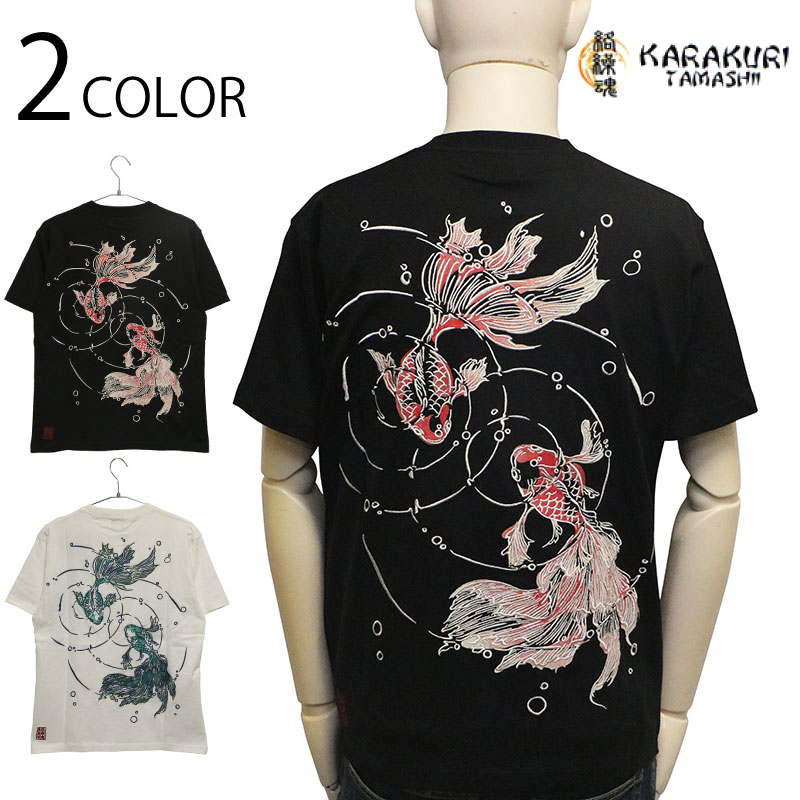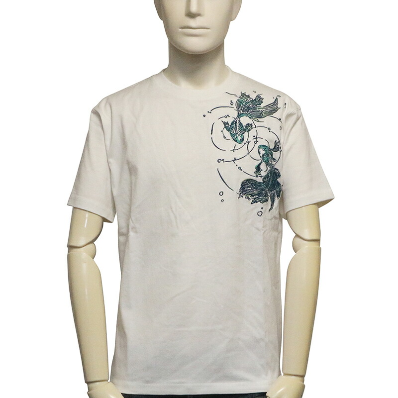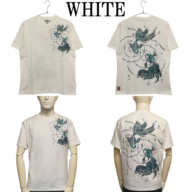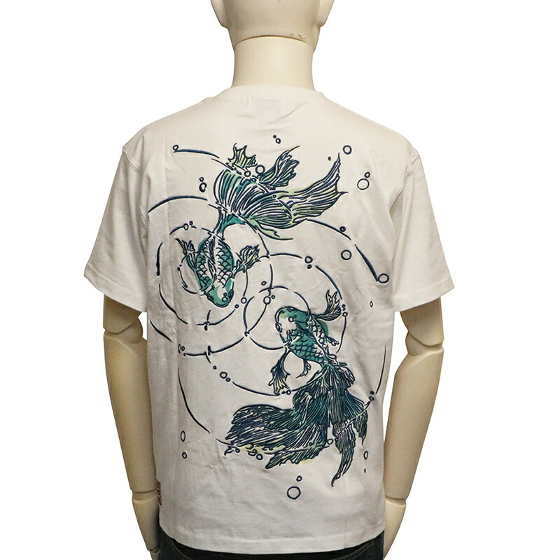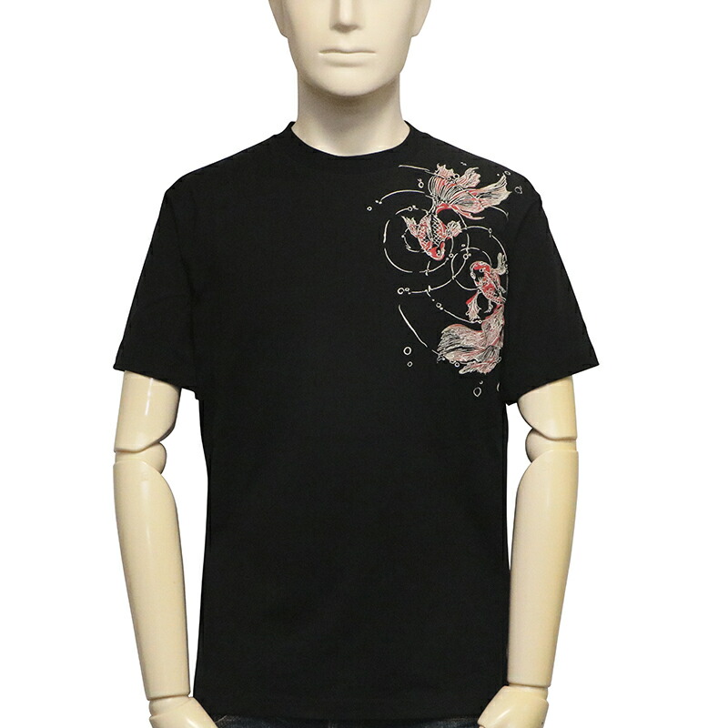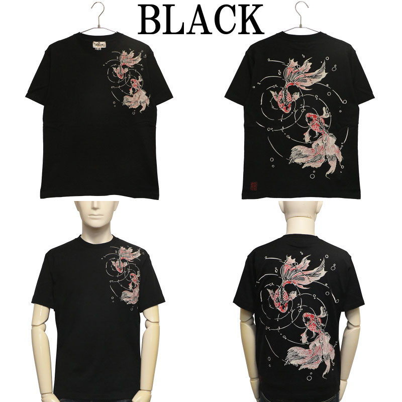 金魚 柄 刺繍 和柄 半袖Tシャツ