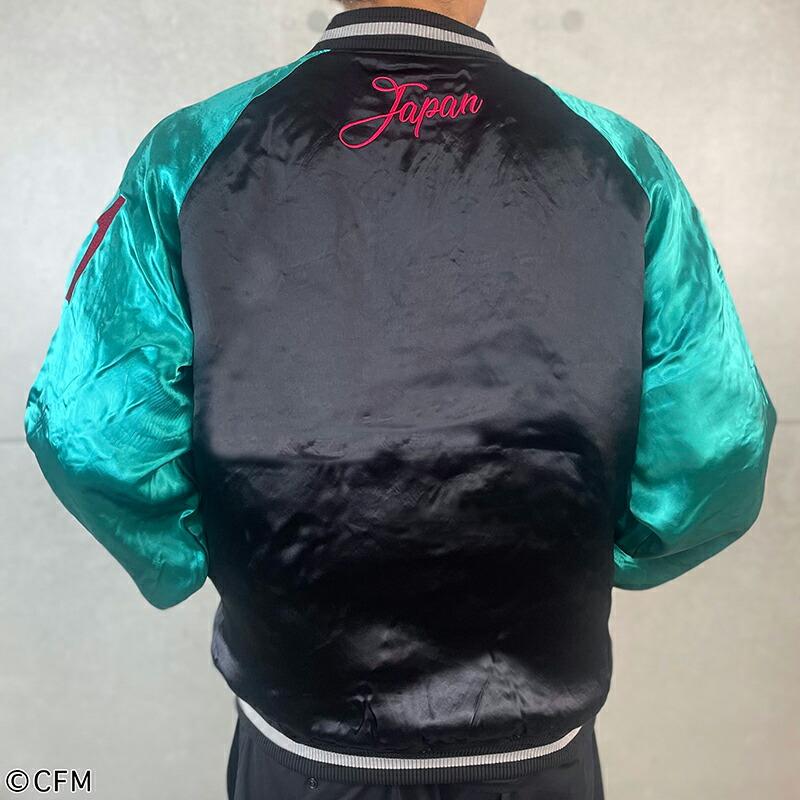 リバーシブル裏面は胸部にロゴ、背面はスカジャンらしく「Japan」の文字を刺繍。