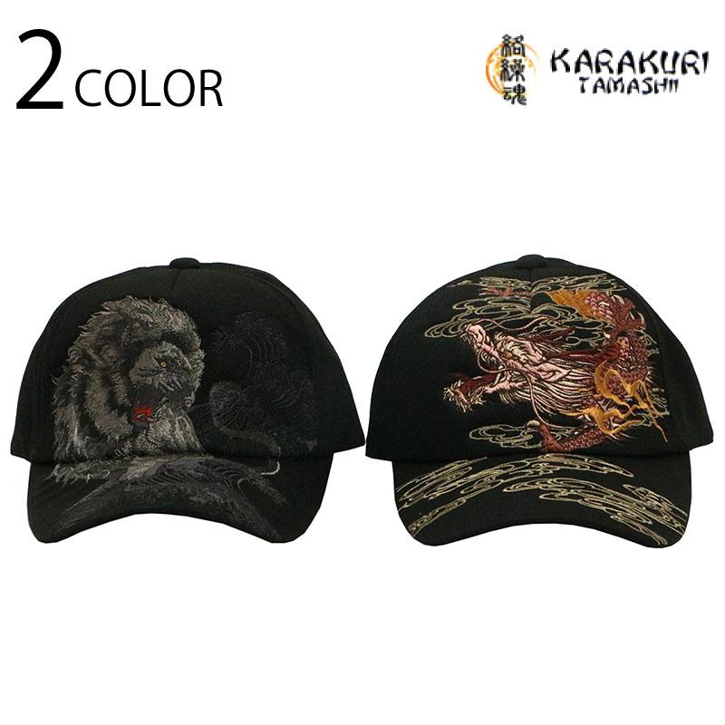 龍 or 獅子 刺繍 和柄 ツイルキャップ 定形外郵便 対応