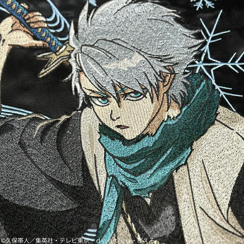 冬獅郎の攻撃をイメージした氷の結晶や流水を背景に細かい且つ大胆な刺繍で表現!